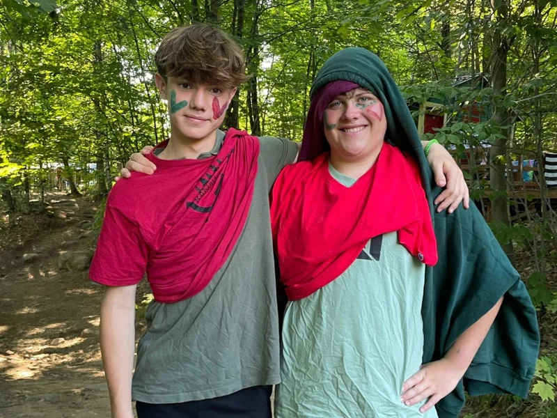 Les garçons et les jeunes non binaires ayant entre 13 et 16 ans séjournent dans nos traditionnelles tentes montées sur des plateformes avec d’autres jeunes ayant le même âge et la même identité de genre*. Les moniteurs et monitrices dorment dans la tente. Nous affectons les moniteurs et monitrices à un groupe en tenant compte des besoins des jeunes et des affinités probables.